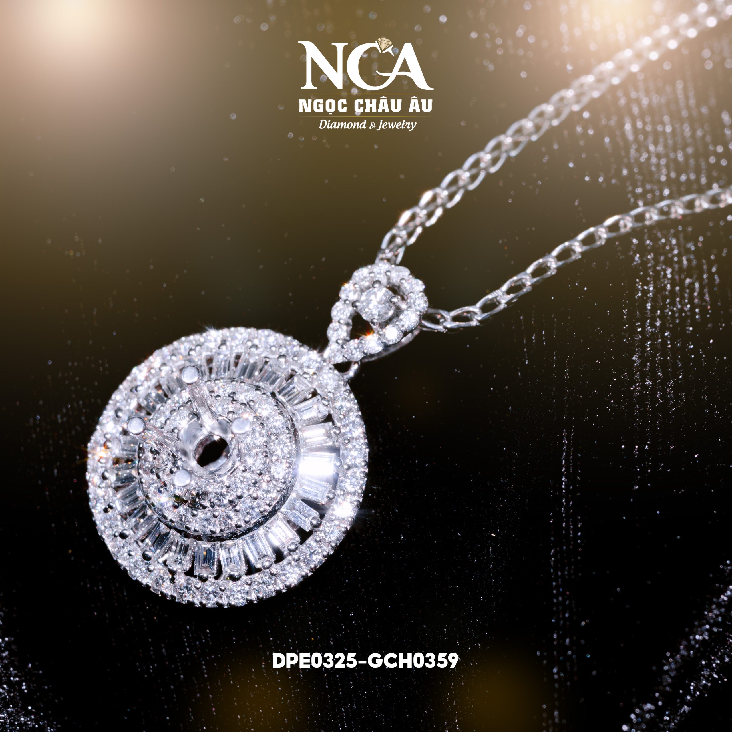 Hãy là người đầu tiên nhận xét “Mặt dây kim cương tròn baguette viền tấm DPE0325”